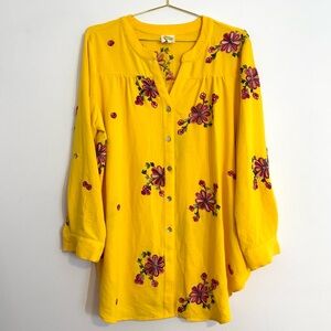 Great condition LOFT navy floral babydoll blouse with ruffled breast line & mini flutter hem sleeves. Keyhole back with button closure. 100% rayon. Nice side slits.