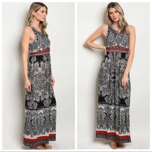 Perfect maxi dress. Great structure. 93% polyester, 7% spandex. Bundle and save!