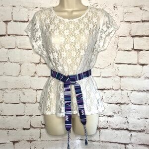 Scalloped edged silver and black mesh over silver bodice. Satiny cummerbund with long sash ties in back. Photos show slight nick on black skirt near lower left seam + stain on one of the sashes. When tied in a bow, stain doesn't show, but could probably be spot cleaned. One picture shows tissue peeking out of one of the two deep pockets. My iPhone 7+ fits with room to spare! Dress really is beautiful. Worn once. PERFECT FOR PARTIES + HOMECOMING