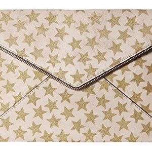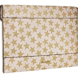 NWT Rebecca Minkoff Glitter Leo Suede Clutch in Nude. Zip-trimmed suede envelope clutch with star print, magnetic-flap closure, antique brasstone hardware, six interior credit card slots, lined Includes dust bag, genuine suede.