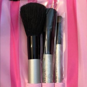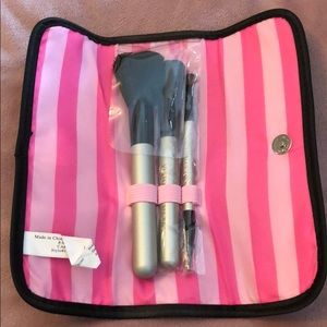 Set of 3 Victoria Secret makeup brushes with travel case. One brush is double sided with a precision brush in 1 side and an eyeshadow blender on the other. NWOT