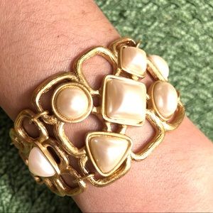 Glamorous vintage Avon bracelet in gold tone & faux pearl. Love it for its unique design but It’s too big for my small wrist Comes with one of “Nana” most loved pearl necklace. Please like & share my items guys.... thank you 🙏😊