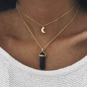 Double layered chain featuring a golden moon and crystal of your choice.