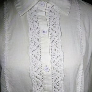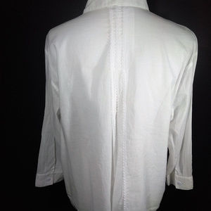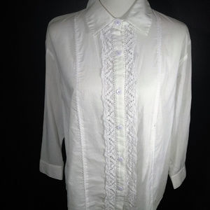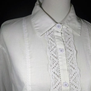 Vintage cabi • Spring 2013 - Collete Top #346 • NEW without tag! Beautiful white soft cotton shirt with button front closure, collar and cuffs is such a feminine design! Darling lace trim front & back with 3/4 sleeve. Can pair with anything already in your closet, dress up or down! Hard to find size!