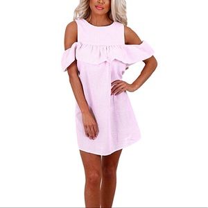 Pink Off Shoulder Stripped Ruffles A-Line Dress