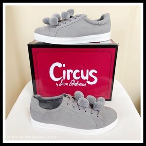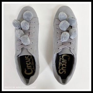 SAM EDELMAN LUXE GREY POM POM FLAT SNEAKERS