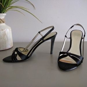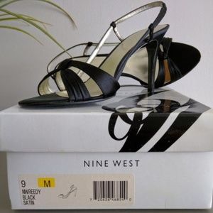NINE WEST "Reedy" Slingback Black Satin Sandals 9M