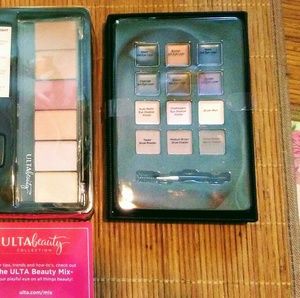 Ulta..shadow and contour pallettes plus a brow and eye liner, highlighter. A total of 3, brushes and pencil sharpener originally from a new Ulta Gift box. Unused. Instructions on how to contour.