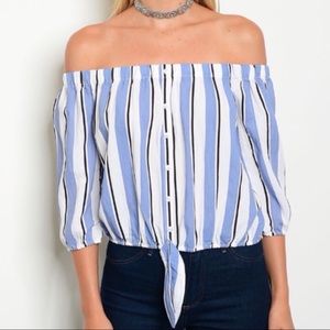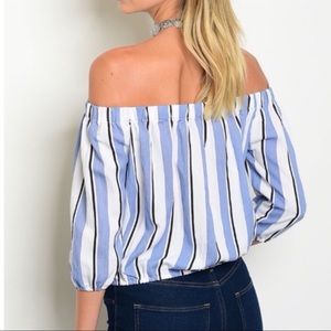 Blue/White Striped Off Shoulder Top