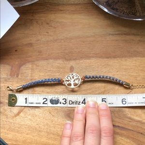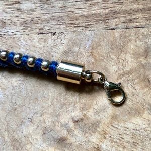 This adjustable bracelet has a gold-colored Tree of Life medallion with blue embroidery and gold beading. Never worn! Dimension pictured!