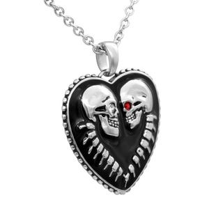 Black Skull Heart Love Punk Crystals Necklace