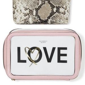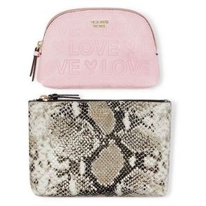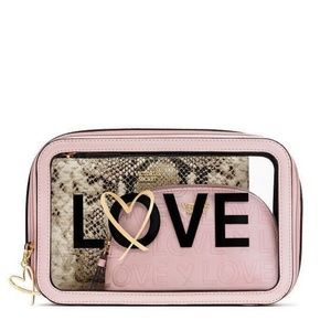 Victorias Secret Cosmetic Bag Trio Makeup Case Travel Pink python snake Set (you will receive all 3 bags shown)