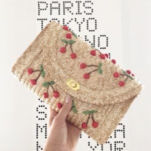 Adorable cherry all over design on this summery rattan clutch. Good chain shoulder strap that can be tucked into the purse to carry as a clutch or pull out to wear over your shoulder. Perfect whimsical bag to go with your summery outfits for the warm days ahead. Great unique vintage vibe that will last through out the years.