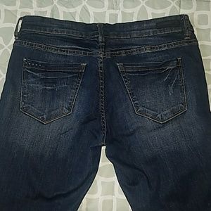 Great pair only used 2x, no signs of wear or tear, very strechy and comfy! 95% cotton 5% spandex, distressed and has colored spots thats how they came when first bought. Great wash!