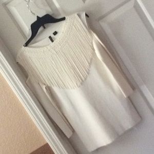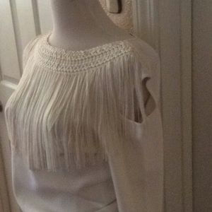 Venini Cream Long Sleeve cut out Blouse, tassels, pullover, size medium,
