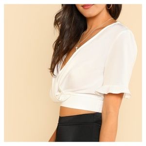 @megs5678 Hi there! The measurements lying flat of the hem is 15 inches without stretch and 18 inches stretched. The back has an elastic hem. Hope that helps! Let me know if you have any further questions 😘 Thanks!