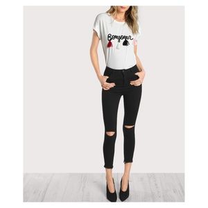 White Short Sleeve Embroidered Tassel T-Shirt