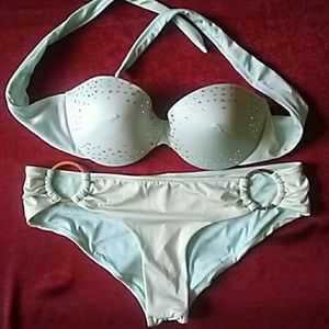 Special edition in perfect condition maybe worn twice.34B matching bottoms size med I think fits more like small only reason I'm selling is bottoms are to small this bikini is gorgeous