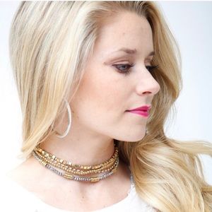 T&J Designs Four Strand Gray & Gold Metallic Bead Choker. One Size.