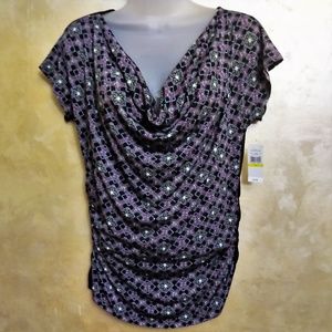 Adorable empire-waist dress by Dress Barn! Fluttery capped sleeves, and a dramatic flattering bodice enhanced by a wide black band that extends to a tie back. The skirt has extra fabric for a lovely loose flow.