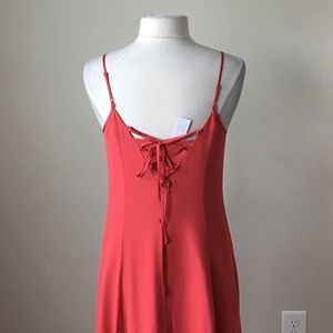 Tie lace up slip maxi coral dress
