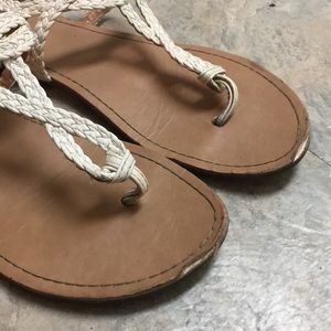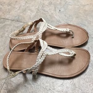 Cream sandals from Target. Side buckle. Easy to put on. Used but still wearable.