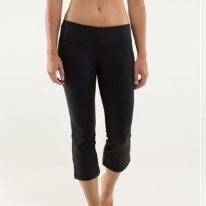 Crop leggings with slit on calf for more comfort. Worn twice but in great condition. Perfect for working out or everyday wear. Full- on Luon material.