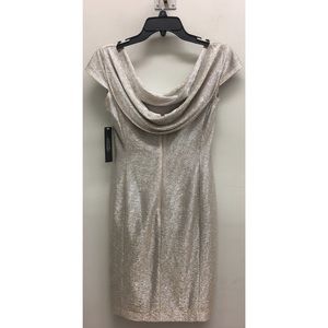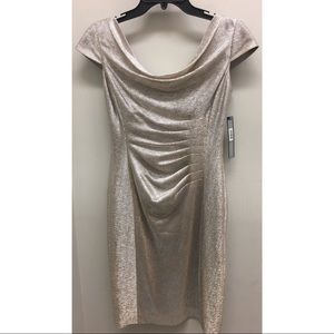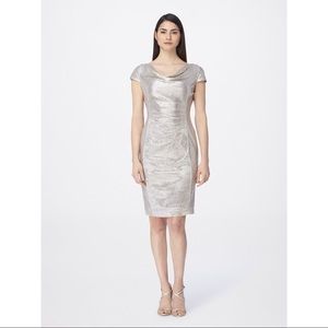 NWT Tahari sexy bodycon dress in metalic silver sequin with short sleeve, size 2