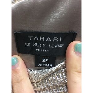NWT Tahari Silver Gold Evening Gown Size 2