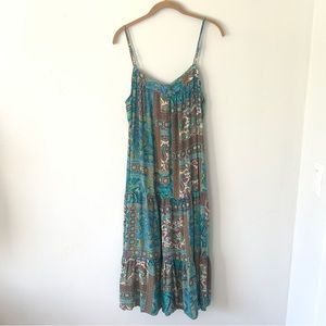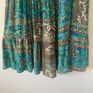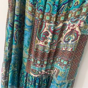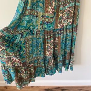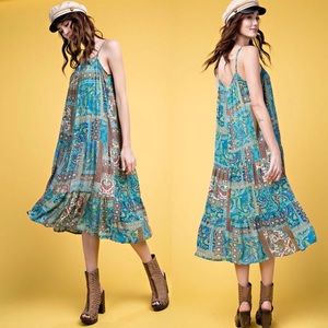 BoHo print button down midi Ruffle hem dress