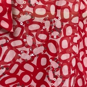 ICE 100% silk sheet red blouse with red camisole. Size M. Circle print with silver sequins. Long sleeve button down. Like new make offer.
