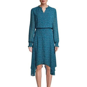 Delicate and feminine- this shirt is beautifully made! From Stitch Fix brand Renee C. Split neckline with single pleat. Lace inset at shoulder. Lovely textured fabric. Long sleeves. Slightly longer in the back. Tiny button at cuff. Base later recommended.