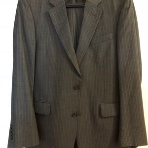 This suit has been tailored slightly in the low back for a slimmer fit. Sleeves hemmed to a 34/35 shirt. Pants hemmed to a 34 length.