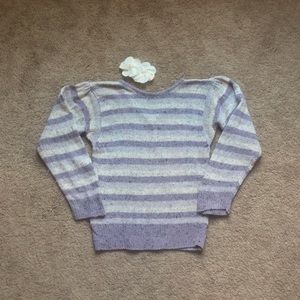 Laura Lisa crop sweater with slightly puffed shoulders. Designer touch with round neck on the front and V neck in the back 💕