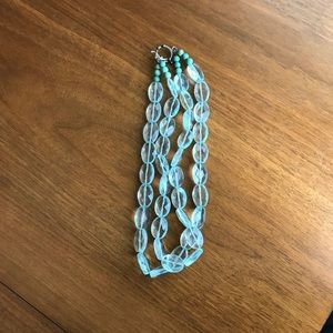 Beautiful semi-precious double row blue topaz necklace accented with turquoise beads at the end. Sterling silver toggle closure. Purchased from a artisan jeweler from Soho District in NYC. Great condition, worn a few times. Measures 17” long.
