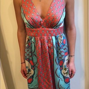 Peach and aqua print dress. 100% silk with polyester lining. Size small. Worn once. Perfect condition.