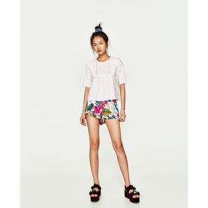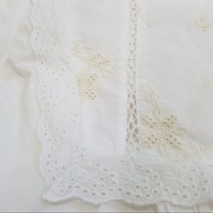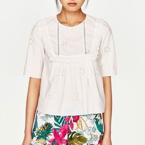 Whit babydoll Eyelet Trim top with cream embroidered details.