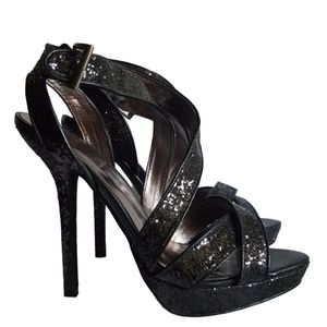 As shown, NEW without box, SOLD OUT! Surprisingly comfortable. Black suede with gold hardware. Rubber outsole, leather backed straps. My photos are part of my description so please view all photos and ask all questions NOT answered in this listing PRIOR to purchase. Ret$163