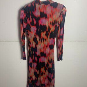 Eva Franco for Anthropologie. New with tags. Camille Dress in orange/grey/white geometric pattern. Sleeveless with plunging v-neck and midi skirt. Belt not included.