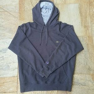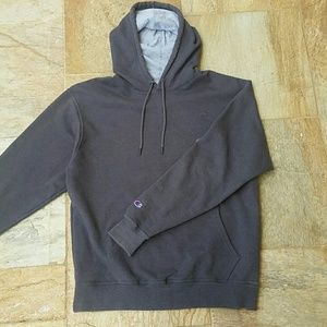 An XL, Charcoal Champion brand men's hoodie. Its preowned an in good condition. There is a stain on the front left of the hoodie right under the Champion logo.