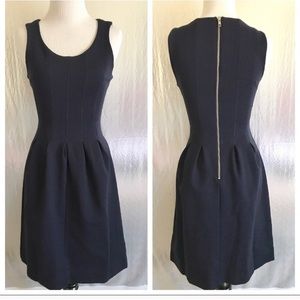 NWOT J. Crew Pleated Flare Dress. Size 00. Color Navy Blue. Only worn once to try on. Very comfortable yet with a tailored look can be dressed up for a cocktail party or more business casual for work. Fabric is a thicker pointe type with some stretch to it. Zip up back. First picture is to just show the style.
