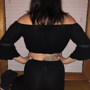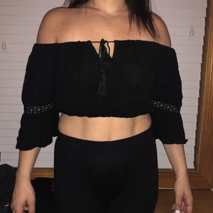 Black crop off the shoulder peasant top