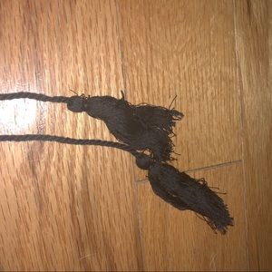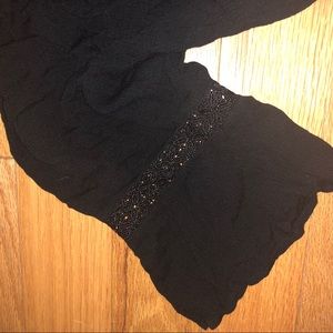 Black crop /tube top/ peasant top. Off the shoulder with drawstrings to make the top adjustable. Drawstrings have fun tassels on the end.