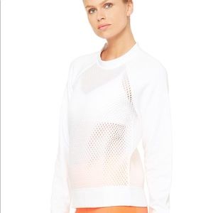 New with Tags ALO Yoga Perforated details and so-soft Modal Fleece take it up a notch and a boxy shape and drop shoulder details make it your new best friend. Pull it on and rock it to and from practice.