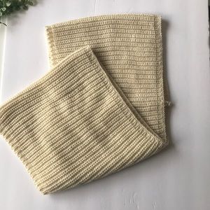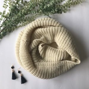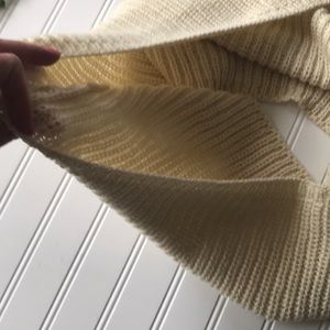 This cream infinity scarf is knit and lightweight. Perfect for a crisp fall day where a blanket scarf is too much. The perfect in-between season scarf. Has some stretch to it and cozy. Has very minor pulls in just afew places if any and in overall great condition! Cream Infinity scarf
