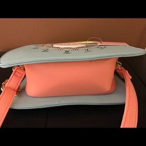 Brand new with tags. Authentic Luv Betsey Johnson pastel mint, peach, and mustard vintage style telephone Crossbody bag. Zipper closure. Adjustable & detachable strap. Lined interior. Can be carried as a satchel also. Measures approx 6.5” x 7.5” x 3”.