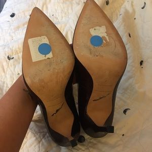 Leather upper and sole. Burgundy patent finish. Pointed toe and 4 inch stiletto heel. Gently used (see bottoms of shoes). Im going to work on removing the labels before I ship out. Size 8. True to size (according to my roommate. Currently selling on shopbop now. No box or dust bag.