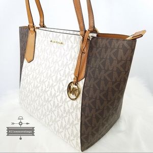 Kimberly Large Bonded Tote MK Signature Top Zip Bag Vanilla / Brown / Acorn