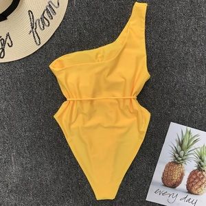 One shoulder yellow one piece