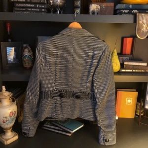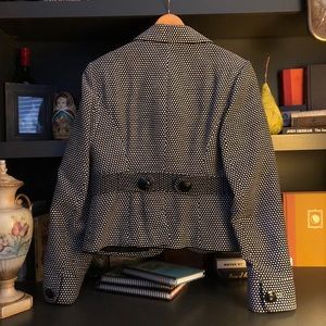 Black and White small detailing with oversized buttons to polish off this crisp tailored jacket! So super smart and snazzy!